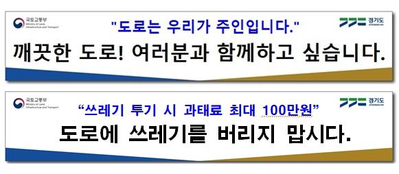 도는 해당 도로의 진출입부(IC), 비탈면 등을 중심으로 도로변 청소상태를 집중적으로 점검하고, 쓰레기 무단투기가 빈번한 곳에 대해 현수막을 설치하는 등의 홍보 활동을 중점적으로 진행한다.
