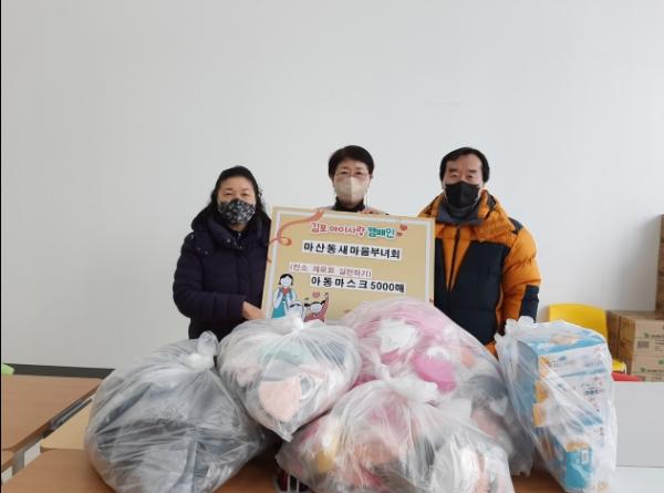 마산동새마을부녀회는 지난 23일 김포아이사랑센터에 저소득 취약계층 아동을 위한 마스크 5,000개를 기탁했다.