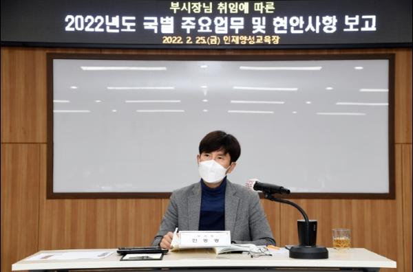 2월 18일 취임한 안동광 부시장은 시의 주요 현안과 시책을 신속하게 파악하기 위해 부서장급 간부공무원과 함께 추진 상황을 공유하고 현안에 대해 심층적으로 논의하는 자리를 계획했다. 24일 자치행정국, 감사담당관, 일자리경제국 등의 보고를 시작으로 28일까지 권역동 등의 보고회를 이어갈 예정이다. 또한 3월 중 주요 사업 현장 및 시 산하기관들을 방문하여 각종 당면사항과 현안사항의 문제점 등 현장의 소리를 청취할 예정이다.