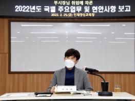 의정부시는 2월 24일 안동광 부시장이 각 국·단·소 권역동 국장 및 과장급 이상 간부공무원들로부터 ‘2022년도 주요업무계획과 주요 현안’에 대해 보고를 받고 있다고 밝혔다.