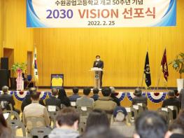 장현국 의장은 축사를 통해 “오늘 수원공고는 비전 선포식에서 개교 이래 지난 50년을 되돌아보고 다음 백 년을 향한 비전을 발표한다”라며 “수원공고가 수원과 경기도의 인재양성소이자 명문 거점학교로서 다음 백년에도 계속해서 성장할 수 있도록 경기도의회에서 많은 노력을 기울이겠다”라고 말했다.
