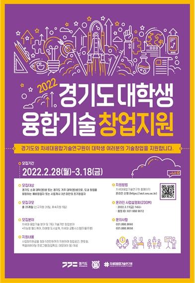 경기도와 차세대융합기술연구원은 ‘2022년도 대학생 융합기술 창업지원 사업’을 추진, 올해 25개 팀의 대학생 창업팀을 지원한다고 28일 밝혔다.