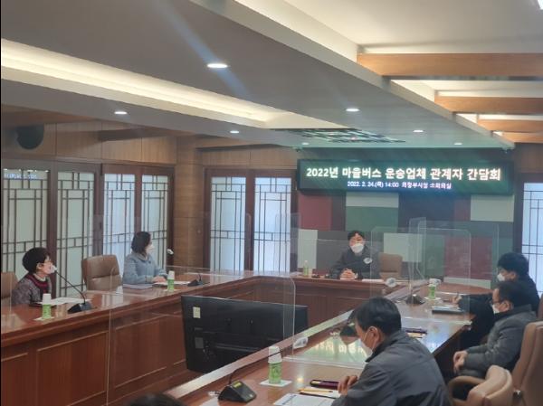 의정부시는 2월 24일 시청 소회의실에서 마을버스 운송업체 대표들과 간담회를 가졌다.