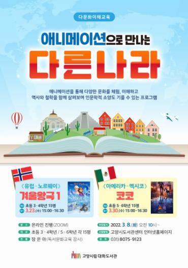 고양시 대화도서관은 어린이들을 위한 다문화 이해 프로그램 '애니메이션으로 만나는 다른 나라'을 온라인 운영한다.