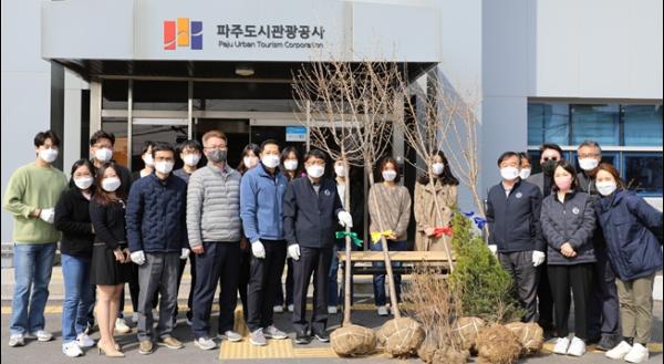 이는 최근 공사가 ESG 가치경영을 추진하기 위해 각 부서별 전략회의를 통해 도출한 세부 계획 중 하나로, 사업장에 나무를 식재함으로써 미세먼지 저감에 동참하고 파주의 관광지를 찾는 관광객들에게 쾌적한 환경을 제공하기 위해 추진됐다.
