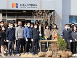 파주도시관광공사는 제 77회 식목일을 맞아 월롱 청사 및 환경순환센터, 마장호수 등 사업장에 40여 그루의 나무심기 행사를 진행했다.