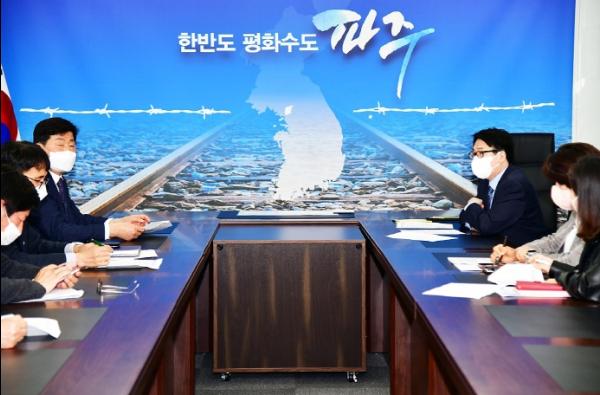 파주시는 5일 시장 접견실에서 최종환 파주시장, 조재희 한국 폴리텍대학법인 이사장, 박민상 폴리텍대학 기획부장 등이 참석한 가운데 간담회를 했다.