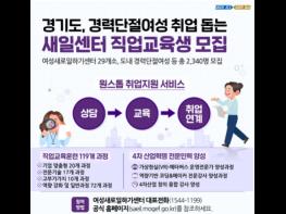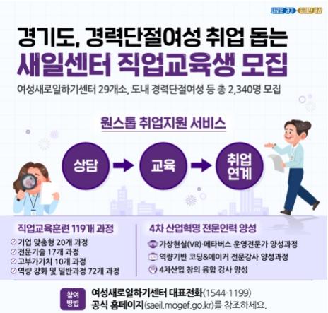 이번 ‘새일센터 직업교육훈련 과정’은 도내 경력단절 여성 등의 취업역량 강화와 전문인력 양성을 목표로 추진되는 사업으로, 총 2,340여 명의 교육생을 모집해 운영할 계획이다.