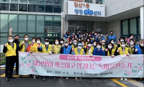고양시 일산1동 행정복지센터가 지난 5일 일산1동 주민자치회 및 통장협의회 등과 함께 새봄맞이 초화식재 및 마을 대청소를 실시했다.