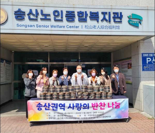 사랑의 반찬 나눔 사업은 민·관 협력 사업이며, 매주 수요일 송산권역에 거주하는 독거노인, 사례관리 가구 등 취약계층 내에서 반찬 조리가 힘들어 균형 있는 영양섭취에 어려움을 겪고 있는 30가구를 선정해 직접 조리한 밑반찬 3종을 전달하는 사업이다.