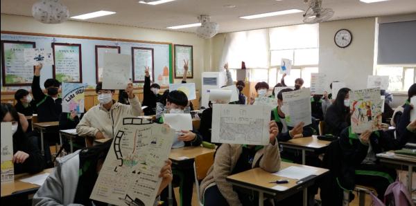 참가 대상은 본교 학생 2학년 244명, 3학년 285명으로, 이번 활동으로 학생들은 삶의 가치를 이해하고 자신의 꿈에 대해 구체적으로 설계하고 표현해 봄으로써 진로의식을 개발?고취하는 시간을 가졌다.