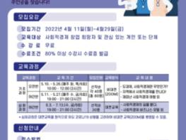 양주시사회적경제지원센터는 11일부터 오는 29일까지 2022년 사회적경제 창업교육아카데미 기초·심화과정 수강생을 선착순으로 모집한다.
