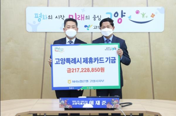 고양시는 지난 11일 NH농협은행 고양시지부(지부장 오영석)로부터 제휴카드 적립기금 2억 1,722만원을 수령했다고 밝혔다.