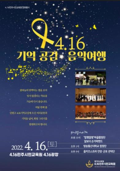 4.16민주시민교육원(원장 전명선)이 16일 ‘기억 공감 음악여행’을 진행한다고 14일 밝혔다.