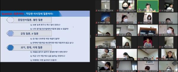 이번 교육은 신구대학교 유아교육과 송금자 교수가 강사로 나서 ‘신입교사의 역할 및 자세’를 주제로 ▲신입교사의 역할 및 자세 ▲표준보육과정-놀이상호작용의 실천 등의 내용으로 실시간 화상교육을 진행했다.
