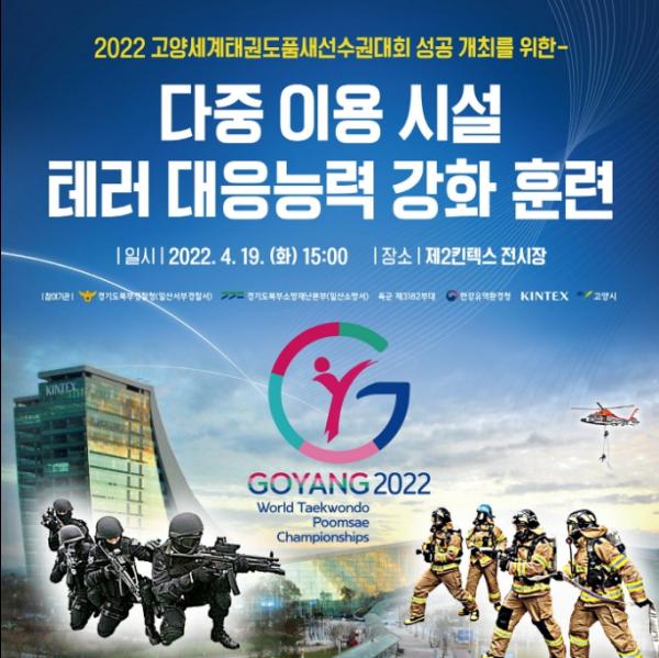 시는 4월 21일부터 24일까지 열리는 ‘고양 세계태권도품새선수권대회’ 개최를 앞두고 있다. 전세계 70여개국 2,000여명의 선수와 관람객의 안전을 위해 시는 코로나19 유행 이후 처음으로 현장대응 훈련을 실시해 기관간 유기적인 협조 체계를 구축하고 현장대응 역량을 강화할 방침이다.