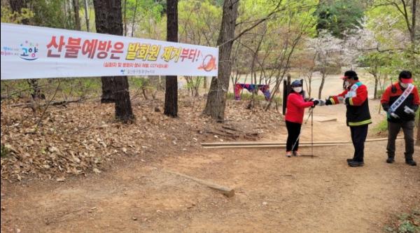 고양시가 산불 예방을 위해 고봉산 등 주요 등산로에서 산불예방 리플릿과 홍보물을 배포하며 산불예방 홍보 활동에 나섰다.