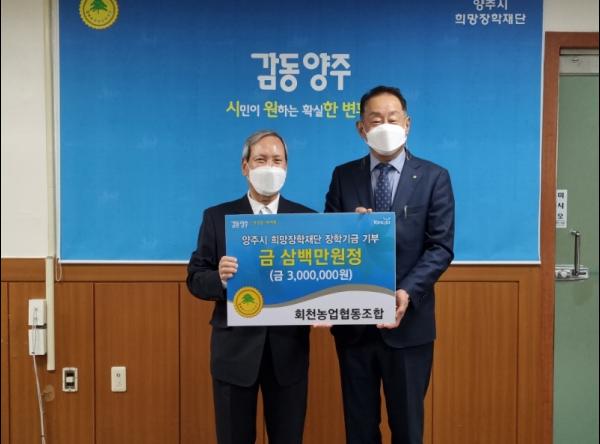양주시희망장학재단은 지난 14일 회천농업협동조합에서 장학금 300만원을 기부했다고 밝혔다.