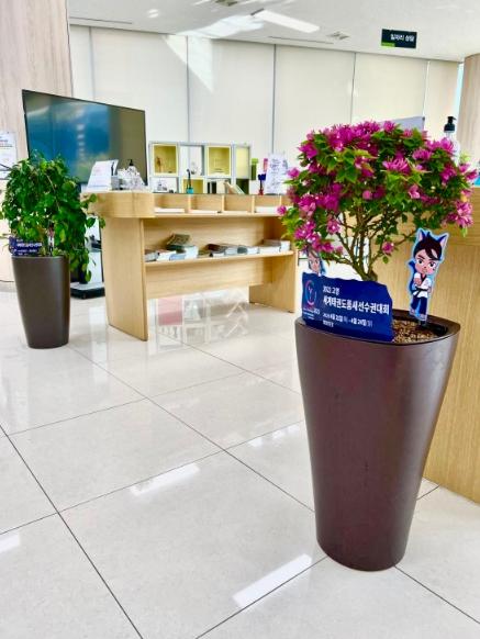 일산서구는 민원실에 화사한 봄꽃과 고양 세계태권도품새선수권대회 캐릭터를 함께 배치하여 대회를 홍보함과 동시에 코로나에 지친 시민들이 잠시나마 힐링할 수 있는 편안한 환경을 조성했다. 또한, 그린힐링 오피스를 위해 비치한 공기정화식물의 생육상태를 수시 점검해 민원실을 방문하는 시민들에게 보다 쾌적한 환경을 제공하고자 노력하고 있다.