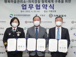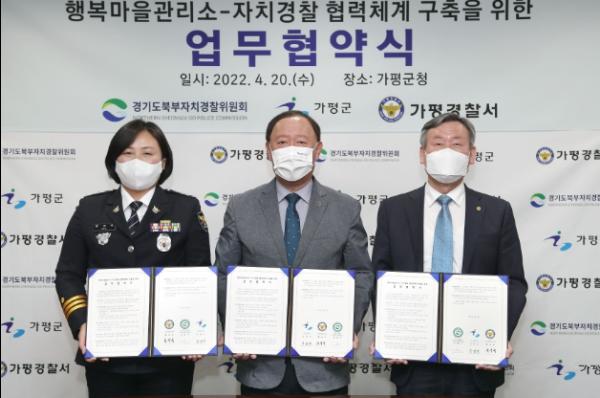 경기도북부자치경찰위원회는 20일 오전 가평군청에서 가평군, 가평경찰서와 함께 이 같은 내용의 ‘행복마을관리소-자치경찰 협력체계 구축을 위한 업무협약’을 체결했다.
