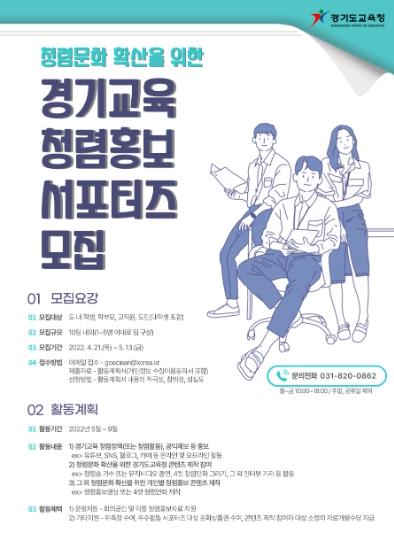 경기도교육청이 도민을 대상으로 4월 21일부터 5월 13일까지 청렴 홍보서포터즈를 모집한다.