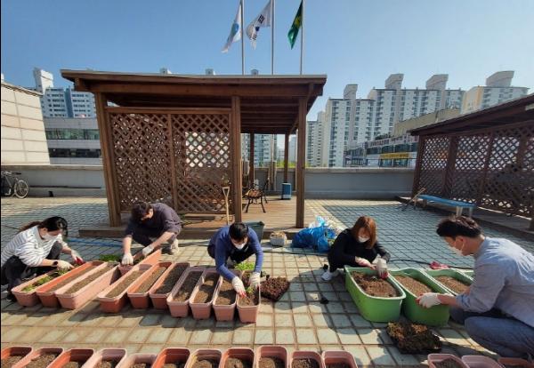 신곡1동宅(댁)의 옥상텃밭 라이프 사업은 청사 옥상에 상자 텃밭 등을 활용해 직원들이 상추, 가지 등 제철 채소를 가꿈으로써 당면업무로 지친 심신을 치유하고, 수확한 야채를 지역 어르신들과 함께 나누는 사업이다. 지난해 시범 운영을 통해 저소득층 어르신 40여 명에게 수확물을 배부한 바 있으며, 사업에 대한 좋은 반응이 이어지자 올해는 정식 사업으로 추진할 계획이다.