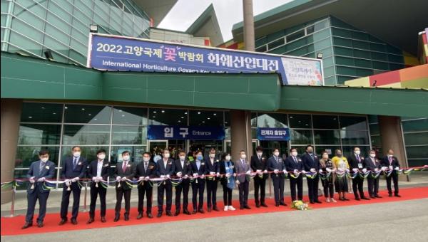 ‘2022고양국제꽃박람회’의 개막식이 22일 오전 10시 30분 고양꽃전시관 전면광장에서 정부 및 기관 인사, 유관기관장, 참가업체 대표, 화훼농가 관계자 등 약 100여명이 참석한 가운데 웅장한 현악 공연으로 막을 열었다.