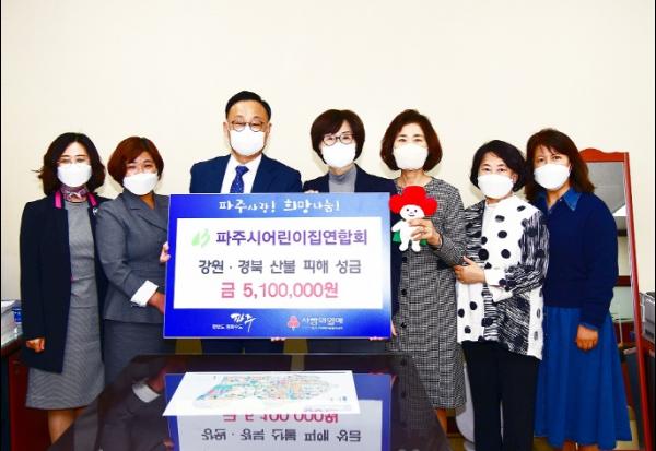 파주시 어린이집연합회(회장 전금희)가 지난 22일 강원·경북 산불피해 성금 510만원을 사회복지공동모금회에 기탁했다고 밝혔다.