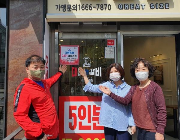 파주시 금촌2동(동장 김영미)은 지역사회보장협의체(위원장 유정규)와 함께 지난 27일 ‘김준호의 대단한갈비 파주금촌점(대표 김듸모데)’을 금이동네 사랑나눔가게 9호점으로 선정하고 현판을 제공했다고 밝혔다.