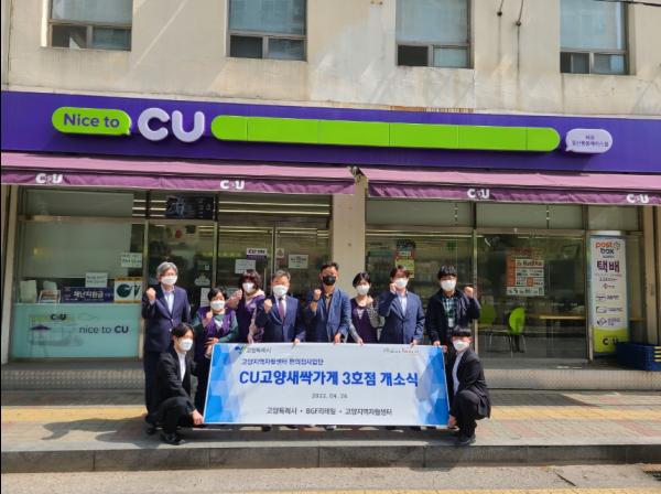고양시가 지난 26일 저소득층 자활근로 사업단의 CU편의점(풍동점) 3호점 오픈식을 개최했다. CU장항낙원 1호점, CU정발산 2호점에 이어 CU풍동 3호점 신설을 통해 7~8명의 일자리가 창출될 예정이다.