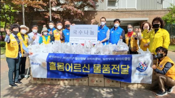 이번 취약계층 국수 나눔에는 국제로타리 3690 일산우정 로타리회(회장 모상철)의 후원을 통해 25인분 분량의 국수 200봉지가 준비됐다.