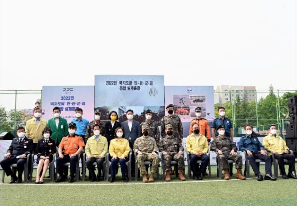 최근 우크라이나 사태 등으로 비상 대비의 중요성이 강조되는 가운데, 경기도가 28일 성남종합운동장 보조경기장에서 ‘2022년도 국지도발 민·관·군·경·소방 통합 실제 훈련’을 실시하고 비상대비태세 확립에 나섰다.