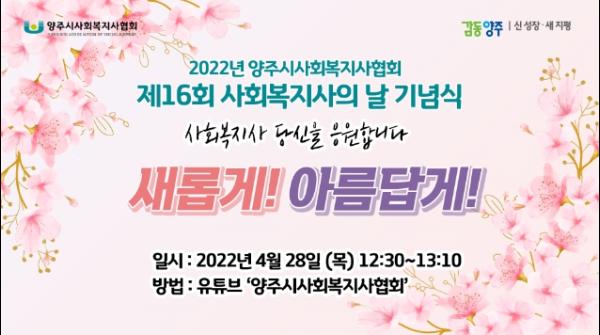 양주시사회복지사협회(회장 최용석)는 지난 28일 양주시사회복지사의 날을 맞아 온라인 기념식을 개최했다.