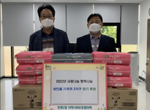 고양시 일산서구 탄현2동 행정복지센터는 지난 1일 가정의 달을 맞이해 관내 취약계층 어르신을 위한 정기후원 의사를 밝힌 개인기부자로부터 성인용 기저귀 3박스(180개)를 전달받았다고 밝혔다.