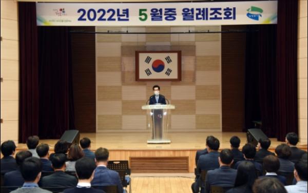 의정부시는 5월 3일 시청 대강당에서 직원 150여명이 모인 가운데 5월 중 월례회의를 개최했다.