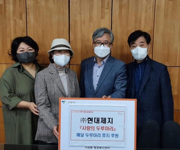 김정숙 민간위원장은 “(주)현대제지는 가좌동으로 분동되기 전부터 소외계층을 위해 따뜻한 손길을 내밀었던 기업이다. 이번에도 후원을 약속해주셔서 감사드리며, 어려운 이웃에게 물품을 잘 전달하겠다”라고 전했다.