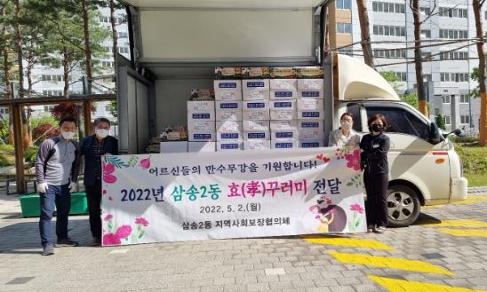 고양시 삼송2동행정복지센터는 삼송2동 지역사회보장협의체에서 가정의 달을 맞이해 지난 2일과 3일, 75세 이상 어르신 580세대에 ‘효(孝)꾸러미’를 전달했다고 밝혔다.