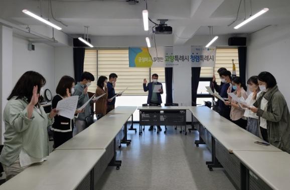 직원들은 “고양시 공직자로서 깨끗하고 투명한 고양시를 만들기 위해 부패를 근절하고, 청렴한 조직문화를 조성하는 데 모범이 될 것”을 다짐했으며, 조재현 효자동장은 “공직자의 청렴함이 중요시되는 만큼 앞으로도 정기적으로 청렴 선서를 통해 조직 내 청렴문화를 정착시키겠다”고 말했다.