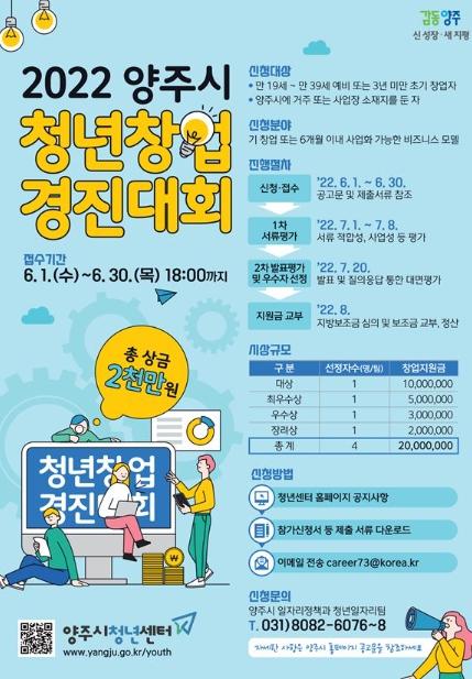 양주시는 오는 30일까지 ‘2022 청년창업 경진대회’에 참여할 청년 창업가를 모집한다고 밝혔다.