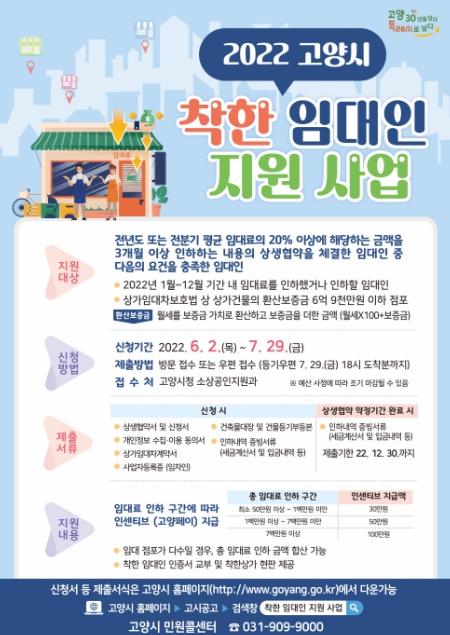 대상은 상가임대차보호법에서 규정하고 있는 건물 중 환산보증금(월세×100+보증금) 6억 9천만 원 이하 점포이다. 시는 2022년 1월부터 12월 중 전년도 또는 전분기 평균 임대료의 20%이상 금액을 3개월 이상 인하하는 내용의 상생협약을 체결한 임대인에게 최소 30만원에서 최대 100만원 상당의 고양페이를 지급한다.
