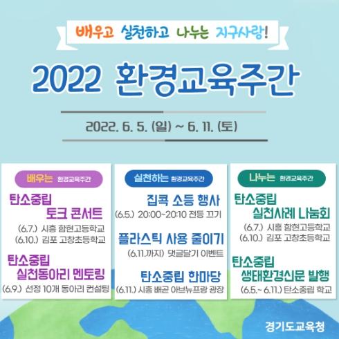 경기도교육청이 5일부터 11일까지 탄소중립을 실천하는 인식 확산을 위해 도내 모든 학교에서 2022 환경교육주간을 운영한다.