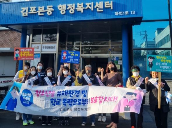 김포본동 행정복지센터(동장 윤은주)는 지난 6월 2일 저녁 청소년의 달을 맞아 북변동 먹자골목 일원에서 청소년 지도위원과 민관합동으로 청소년 유해환경 개선 캠페인을 실시했다.