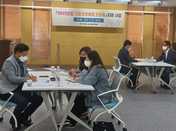 자체적으로 애로사항에 대한 해결방안을 제시하지 못하는 경우, 2022년도 새롭게 진행하고 있는 기업경영애로 컨설팅 사업에 위촉된 법률, 세무, 노무 전문가의 자문을 통해 보다 전문적으로 애로사항을 해소할 수 있다. 기업경영애로 컨설팅은 매월 넷째 주 화요일 오후 2시, 센터 회의실에서 정기적으로 진행되고 있다.