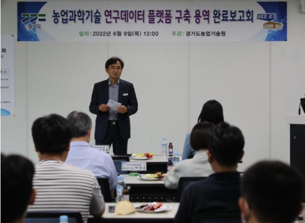 경기도농업기술원이 9일 화성 농기원에서 ‘농업과학기술 연구 데이터 플랫폼 구축’ 용역사업 완료보고회를 열었다.