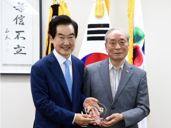 의정부시는 6월 9일 시장실에서 대한노인회 의정부시지회장(前 2명, 現 1명)을 초청해 감사패를 수여했다.
