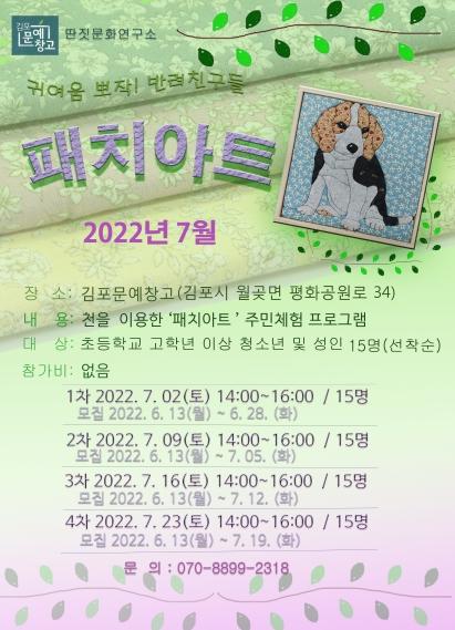 김포시는 6월 13일부터 6월 28일까지 김포문예창고 주민참여프로그램 ‘패치아트(Patch Art)’ 수강생을 모집한다.