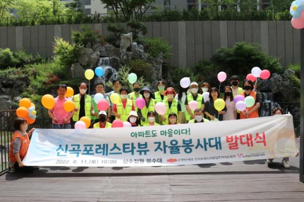 의정부시자원봉사센터(이사장 이용걸)에서 지원한 의정부시 3호 아파트 봉사단‘신곡포레스타뷰 자율봉사대’(단장 박지선) 발대식이 지난 6월 11일 성료 됐다.