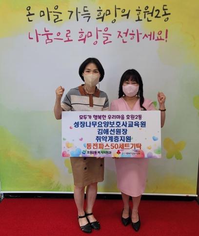 의정부시 호원2동행정복지센터 복지지원과는 6월 14일 성장나무요양보호사교육원이 취약계층을 위한 동전파스 50세트를 전달했다고 밝혔다.