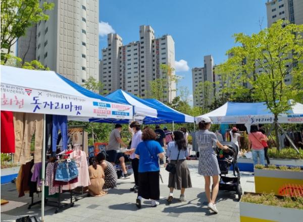 양주덕정행복주택 공원에서 열린 회천 돗자리마켓에는 사전 신청한 11팀의 아동·청소년을 포함한 지역주민 사장님(셀러)가 판매하는 플리마켓과 무료로 체험할 수 있는 그립톡 만들기, 나무팽이, 스트레스 해소 격파 체험으로 구성된 꼼지락부스가 진행되었다. 이 외에 양주시 찾아가는 문화활동 ‘쏠롱구스 작업실’의 공연과 양주덕정행복주택 주거행복지원센터의 지역주민을 위한 꽃 나눔 이벤트도 진행되어 약 400명의 청소년을 포함한 지역주민들이 참여했다.