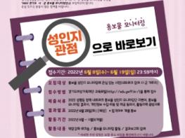 모니터링단은 성역할 고정관념 및 편견, 성차별적 표현, 외모지상주의, 폭력에 대한 왜곡된 시각, 가족에 대한 고정관념 및 편견, 성별 대표성 불균형 등을 살핀다. 참여 희망자는 6월 19일까지 경기도여성가족재단 교육포털을 통해 신청하면 된다. 서류심사를 거쳐 6월 말 합격자를 발표할 예정이다.